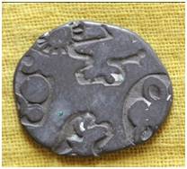 | Description / विवरण | The coin is an imperial type of Punch- marked coin. It is oval in shape. Obverse Sun, deer facing right, two taurins flanked by circle, a bull is facing right. Reverse Spider, crescent and other symbols are not clear. |