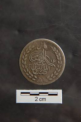 | Description / विवरण | Silver coin of Afghanistan. Obverse Creeper along the border Kabul at the top monogram and 1316 in the centre. Reverse Creeper along the above the border, a mosque like structure in the centre with several weapons below it legend Ek Rupiya in Persian script in the lower most region. |
