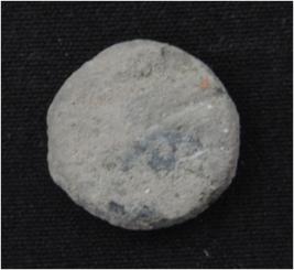 | Description / विवरण | Trench CW-3, Depth 1.17mts near peg C4, Stratum layer1 It is a copper coin. It has a disc like shape and rough surface. Features are not visible. Hard patina is present over it. |