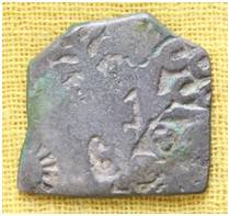 | Description / विवरण | The coin is an imperial type of Punch- marked coin. It is hexagonal in shape. Obverse Sun, tree, animal facing right above the five arched hill, Six armed wheel and an indistinct symbol. Reverse Tree. |