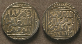 | Description / विवरण | Obvesre - In double square inside circle, Fi Ahad al-Imam / al-Mustasim Amir / al Mominin. Margin Ba Hazrat Dehli fi Sanh Saman Wa Khamsin. Reverse - In double square inside circle, al sultan al-azam Nasir alduniya Waldin abul muzaffar Mahmud ibn al sultan. Margin Appears to be the same as on obverse saman Khamseen. |