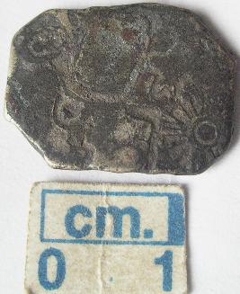 | Description / विवरण | Obverse has sun symbol is present with faded tourine in small circle, but rest are unidentifiable. Reverse is plain. |