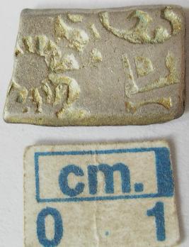 | Description / विवरण | A silver punch marked coin, rectangular Obverse 1st sun symbol, 2nd six arm symbol, 3rd taurine symbol, 4th steel yard Reverse has a flower symbol with patels. |