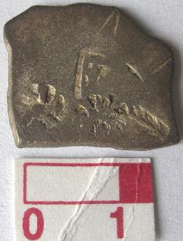 | Description / विवरण | A silver punch marked coin, Hexagonal Obverse 1st six arm symbol with three arrowhead and four taurine in oval, 2nd six arm symbol with arrow head and trees. Partly stamped , 3rd rabbit or jackal with taurine symbol, 4th sun symbol partly stamped , 4th sun symbol, 5th a circle between two taurine , 6th a flower symbol beneath 5 Reverse 1st Sun symbol 2nd tree with branches, 3rd another tree with branches. |