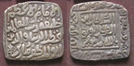 | Description / विवरण | Obverse - Al-imam al-azam khalifa rabil alamin Qutbudduniya wad din Abul muzaffar Mubarak Shah. Reverse - In square As-sultan ibn As-sultan al-wasiq billah amir ul-mominin margin; ba hazrat Darul khilafa and date in Arabic words. |