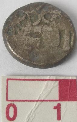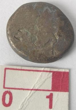 | Description / विवरण | A silver punched marked coin, circular. Obverse 1st sun symbol, 2nd unidentified, 3rd triangle headed standard , 4th crescent on hill Reverse has unidentified lines. |