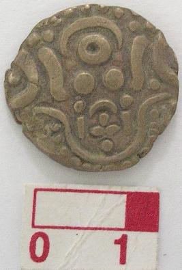 | Description / विवरण | A gold coin of Govinda Chandra Deva, circular Obverse Goddess seated cross-legged. Reverse has legend in three lines in bold Nagari letters-1. Srimad-Go, 2-Vindachandra, 3-Deva Reference 1. Coin-parameshwari lal Gupta Plate no. XVIII-187 Detaild on pp 202 No.-187 2. Studies in Indian coins-D.C. Sircar,Plate No. XVI-10 |