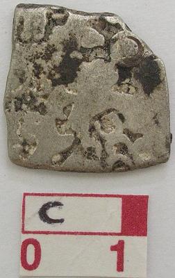 | Description / विवरण | A silver punch marked coin, Pentagonal Obverse Hill symbol with crescent on top, six arm symbol with arrowhead and taurine, an animal symbol elephant , sun symbol, Unidentified Reverse has an arrow shaped symbol , probably a fish symbol. |