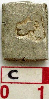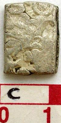 | Description / विवरण | A silver punch marked coin, Rectangular Obverse Sun symbol, hill symbol with arrowhead, probably a flower symbol. Reverse has hill symbol with crescent on top. |