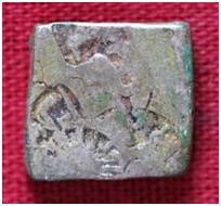 | Description / विवरण | The shape of the coin is square. This is an imperial type of punch marked coin. Obverse Sun and some indistinct symbols. Reverse Branches of tree and some indistinct symbols. |