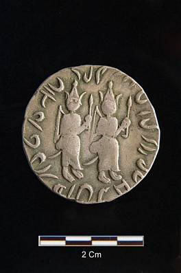 | Description / विवरण | Obverse Rama, Lakshmana and Sita seated on the throne Hanumana holds an umbrella, legend illegible. Reverse Figures of standing Rama and Lakshmana illegible legend around them. |