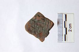 | Description / विवरण | Obverse- Standing figure of man o the right, small circle surrounded by taurines on the left. In between these there is pole topped with a taurine. Reverse- Indistinct. |