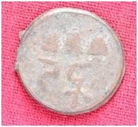 | Description / विवरण | The Shape of the coin is Circular. Obvers Probably the figure of MAO or Moon-God with right hand curved upwards and left hand not visible, the Crescent is above the left shoulder. Reverse Three hills or cone like objects placed in a straight line and below some legend. |
