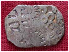 | Description / विवरण | The coin is an imperial type Punch- marked coin. The shape of the coin is octagonal. Obverse Sun, six armed, animal, three arched mountain. Reverse Symbols are minute. |