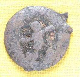 | Description / विवरण | The shape of the coin is circular. Obverse Kushana type king, standing with his right hand curved upward and his left hand extended. Reverse Probably the figure of MAO or Moon-God with his right hand curved upward and the crescent above the left shoulder. |