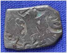 | Description / विवरण | The shape of the coin is roughly rectangular. Two corners are chipped. Obverse Sun, six armed, tree and other symbols are indistinct. Reverse Symbols are minute. |
