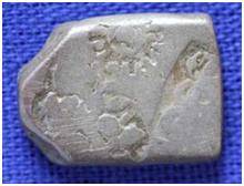 | Description / विवरण | The shape of the coin is roughly rectangular. Two corners are chipped. Obverse Sun, caduceus, tree and other symbols are indistinct. Reverse Symbols are minute. |