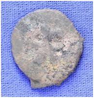 | Description / विवरण | The shape of the coin is circular. Obverse- The figure is not clearly visible. Reverse- probably the figure of MAO or Moon God- with the crescent above the left shoulder and right arm is not clearly visible. |