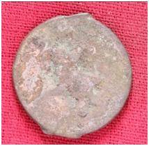 | Description / विवरण | The shape of the coin is circular. Obverse- Kushana type king,staning with left arm extended and right arm curved upward. Reverse- probably the figure of MAO or Moon God- with right arm curved upward and the crescent above the left shoulder. |