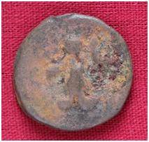 | Description / विवरण | The shape of the coin is circular. Obverse- Kushana type King, standing with his left arm curved down woad and right arm extended. Reverse- probably the figure of MAO or Moon God- with right arm curved upward and the crescent above the left shoulder. |