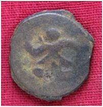 | Description / विवरण | The shape of the coin is circular. Obverse-Kushana type king, standing with his right hand curved upwards and left arm extended. Reverse- Probably the figure of MAO or Moon-God with his right arm curved upward and the crescent above the left shoulder. |