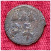 | Description / विवरण | The coin is circular in shape. Obverse- Probably the figure of Mao or Moon God with right arm curved upwards and the crescent above the left shoulder. Reverse- Three hills or cone like objects placed in an straight line and below them some letters are inscribed. |