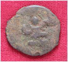 | Description / विवरण | The coin is circular in shape. Obverse- Kushana type king standing with his Right hand curved Up wards and the Left hand extended. Reverse- probably the figure of Mao or Moon God with Right arm curved Up wards and the crescent above the left shoulder. |