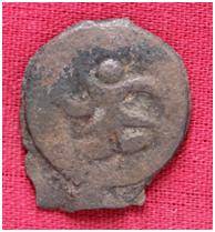 | Description / विवरण | The coin is roughly circular in shape. Obverse- Kushana type king standing with his Right hand curved Up wards and the Left hand extended. Reverse- probably the figure of Mao or Moon God with Right arm curved Up wards and the crescent above the left shoulder. |