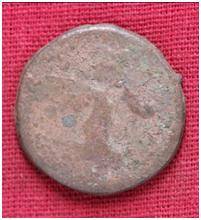 | Description / विवरण | The coin is circular in shape. Obverse- Probably the figure of MAO or Moon God with Right arm curved Up wards and the crescent above the Left shoulder. Reverse- Three hills or cone like objects placed in a straight line and below them some letters are inscribed. |