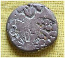 | Description / विवरण | It is an imperial type of punch marked coin. The coin is circular in shape. Obverse Sun, tree, six armed wheel and other symbols are indistinct. Reverse Blank. |