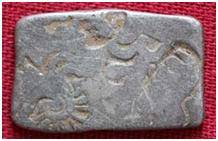 | Description / विवरण | It is an imperial type of punch marked coin. The coin is rectangular in shape. Obverse An animal figure, a Sun, a tree and other symbols are indistinct. Reverse Symbols are indistinct due to abrasion. |
