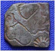 | Description / विवरण | The coin is an imperial type Punch- marked coin. The shape of the coin is hexagonal. Obverse Sun, dog, elephant, animal figure. Reverse Indistinct symbols. |