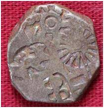 | Description / विवरण | The coin is an imperial type Punch- marked coin. The shape of the coin is irregular. Obverse Sun, six armed wheel, animal figure, three arched gate, Caduceus. Reverse Circle flanked by two taurines. |