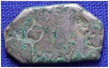 | Description / विवरण | The shape of the coin is irregular. Obverse Six armed wheel wheel and other symbols are not clear due to abrasion. Reverse Blank |