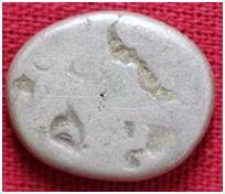 | Description / विवरण | The coin was imperial type of punch marked coin. The coin is circular in shape. Obverse caduceus, three arch mountain, six armed wheel symbol. Reverse Two symbols are not visible clearly. |
