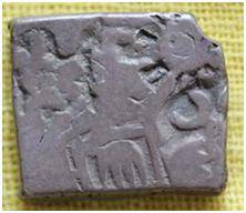| Description / विवरण | The coin is an imperial type punch marked coin. The shape of the coin is pentagonal. Obverse Sun, tree, six armed wheel symbol, an elephant within a square box. Reverse Symbols are not visible. |