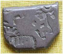 | Description / विवरण | The coin is an imperial type punch marked coin. The shape of the coin is irregular. Obverse six armed wheel wheel, taurine, an indistinct symbol, an insect. Reverse Blank. |