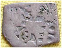 | Description / विवरण | The coin is an imperial type of Punch- marked coin. The shape of the coin is pentagonal. Obverse six armed wheel, frog, Sun, caduceus. Reverse Some indistinct symbols. |
