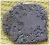 | Description / विवरण | The coin is an imperial type of Punch- marked coin. The shape of the coin is irregular. Obverse six armed wheel, three arched gate, caduceus, chakra, two indistinct symbols. Reverse leaf and some indistinct symbols are not identified due to abrasion. |