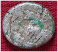 | Description / विवरण | The coin is an imperial type of Punch- marked coin. The shape of the coin is circular. Obverse six armed wheel, Sun. Reverse symbols are not clear due to abrasion. |