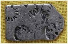 | Description / विवरण | The shape of the coin is irregular. Obverse Sun, six armed wheel, few parts of mountain, snake and other symbols are indistinct. Reverse The symbols are not distinct due to abrasion. |