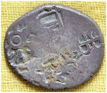 | Description / विवरण | The coin is an imperial type punch marked coin. The shape of the coin is oval. Obverse Sun, six armed wheel, caduceus, three arched gate and other symbols are indistinct due to abrasion. Reverse Three arched hill. |