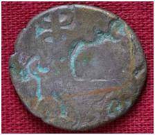 | Description / विवरण | The coin is an imperial type of Punch- marked coin. The shape of the coin is circular. Obverse Caduceus, snake, three arched hill, humped bull, animal and other two symbols are indistinct. Reverse Crescent and other symbols are indistinct. |
