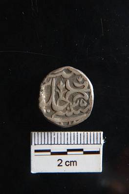 | Description / विवरण | Obverse Muhammad .. 14, quiron. Reverse Maimnat stylied human figure trisul like Sana 35, Jalus. |