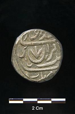 | Description / विवरण | Obverse Muhammad Gazi, Sahibe quiron arrow head, Badshah. Reverse Trisul, Sana 12, Zarb- Alam Nagar . |