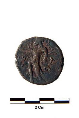 | Description / विवरण | Obverse- standing figure of King, head out of flan below the figure illegible legend is depicted . Reverse- Standing figure of god, legend MAO is written in right of the figure . |