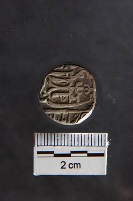 | Description / विवरण | Obverse Muhammad .. Sahibe quiron and the top part of an arrow. 1270. Reverse Maimnat, trisula, Sana 16, Bhopal. |
