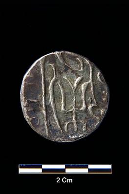 | Description / विवरण | Obverse 127 Muhammad Akbar Sahibi-Qiran, arrow head. Reverse Maimnat, trisul and Sana. |