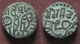 | Description / विवरण | Obverse- Recumbent bull; around in Devnagari suritana sri samasadina and Reverse- Stylised Horseman, around In Devnagari Sri/hamirah. |