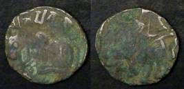 | Description / विवरण | Descrpn./Obv Recumbent bull facing left, wearing jhula (saddle cloth), with trisula (trident) symbol on rump. Above, legend in Sarada script Sri Samantadeva . Descrpn./Rev Rider with lance on caparisoned horse facing right. On left, Sarada letter bhi and on right, Sarada letter ta |